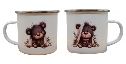 Sublimert Emaljekopp med 2 ulike bilder av grå bamser.