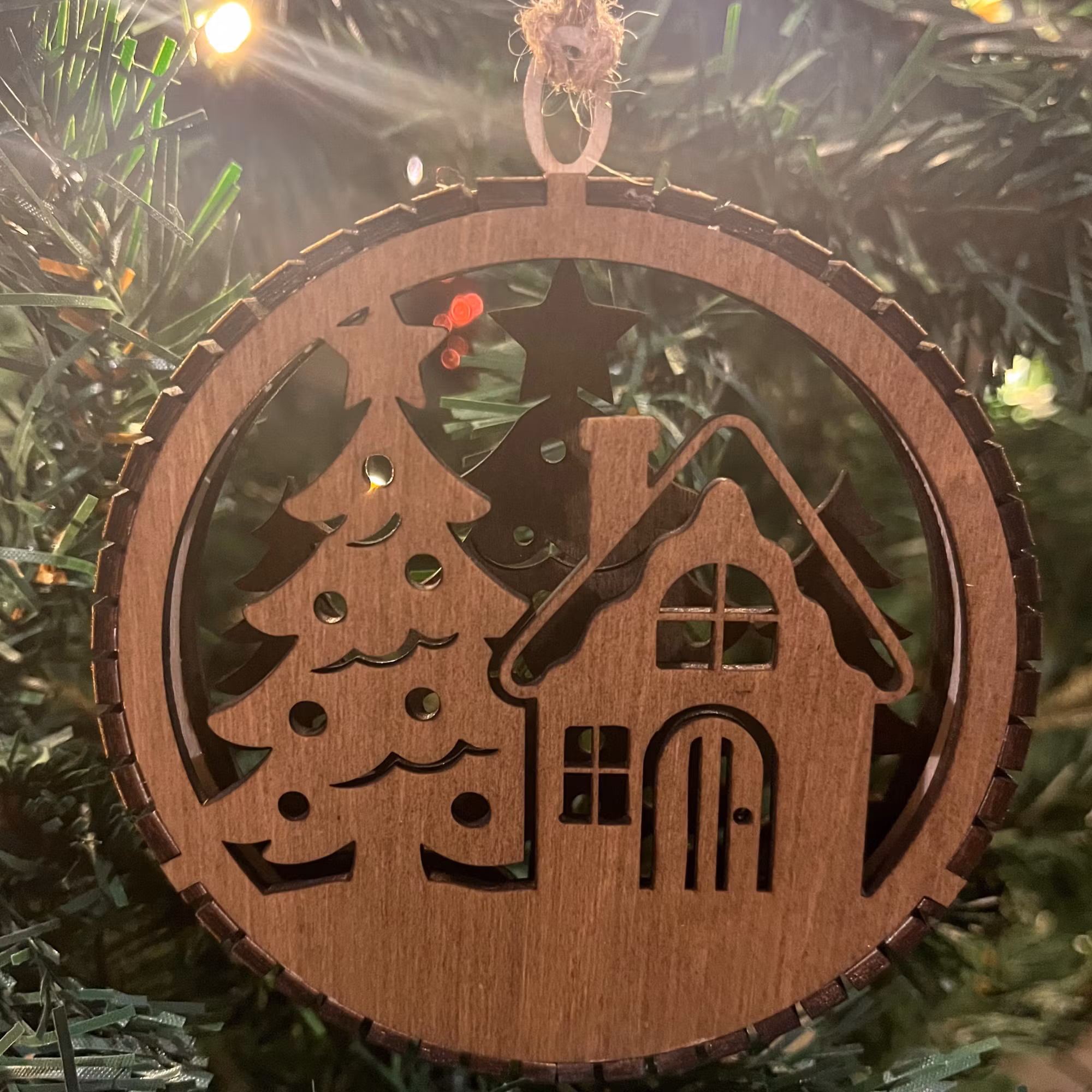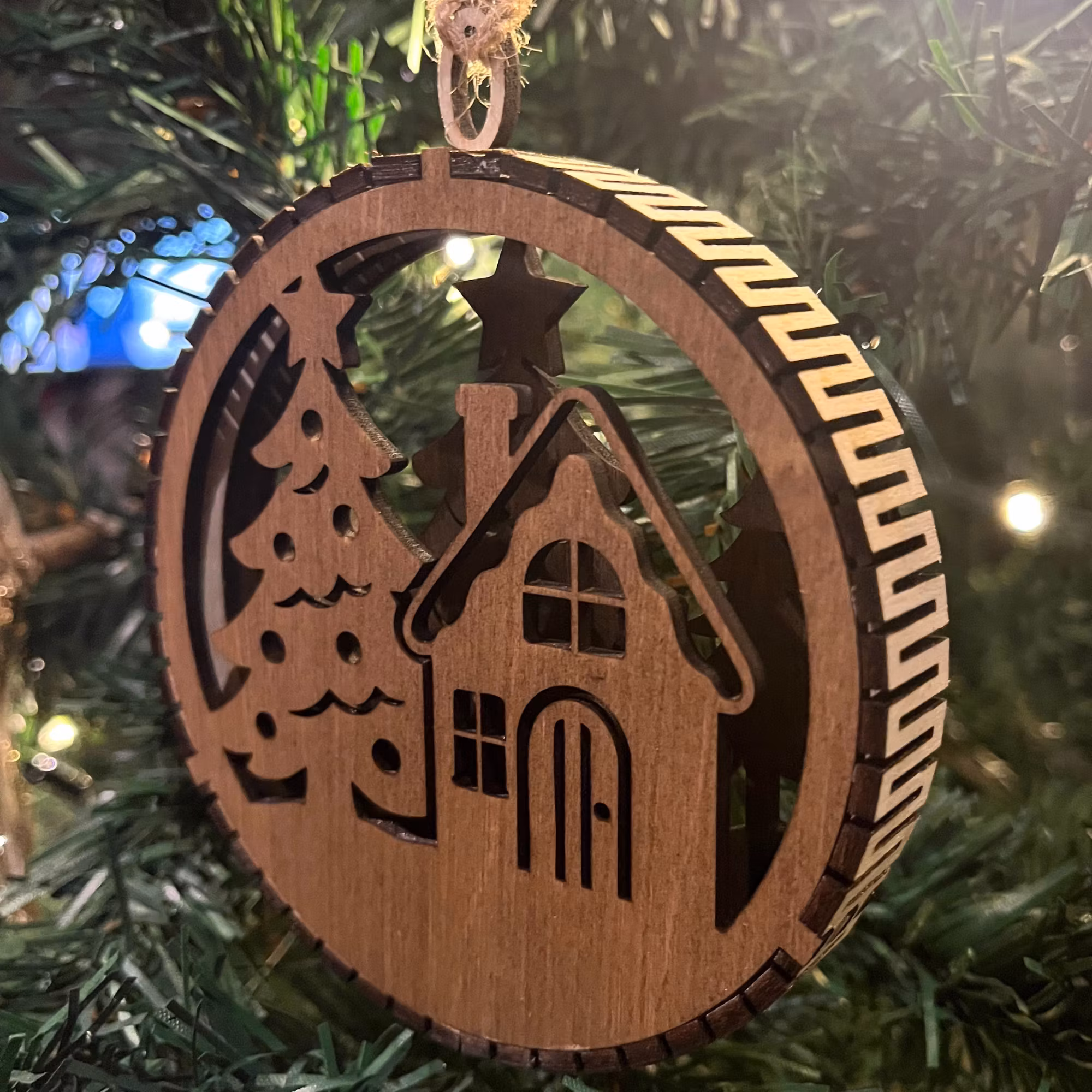 Juleornament "julehus" 89,- På lager. Legg i handlekurv Del Produktbeskrivelse Tilbakemeldinger Juleornament "Julehus".Laget av 3 mm finerplater, beiset med interiørbeis / ubehandlet. Kuttet med laserskjærer.3 lag med ytterkant.Dybde: 1,5 cmDiameter: 10 cm