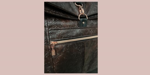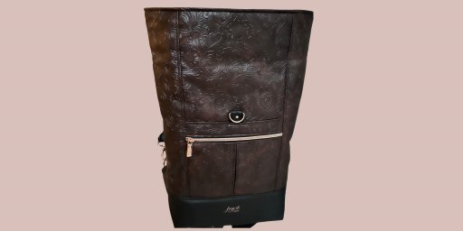 Ryggsekk i brunt preget imitert skinn, rosegull hardware.