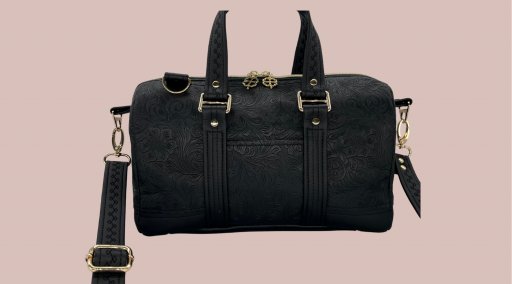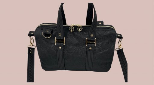🪡 Sydd i svart preget og glatt imitert skinn.