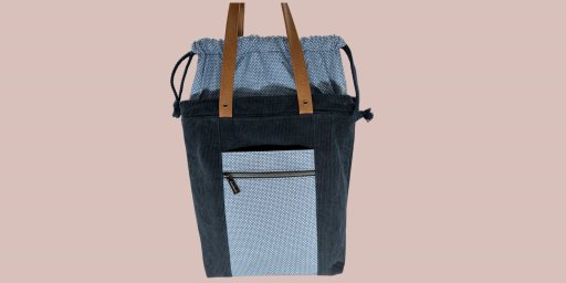 Snøreveske / prosjektveske sydd i mørk blå fløyel og bomull.