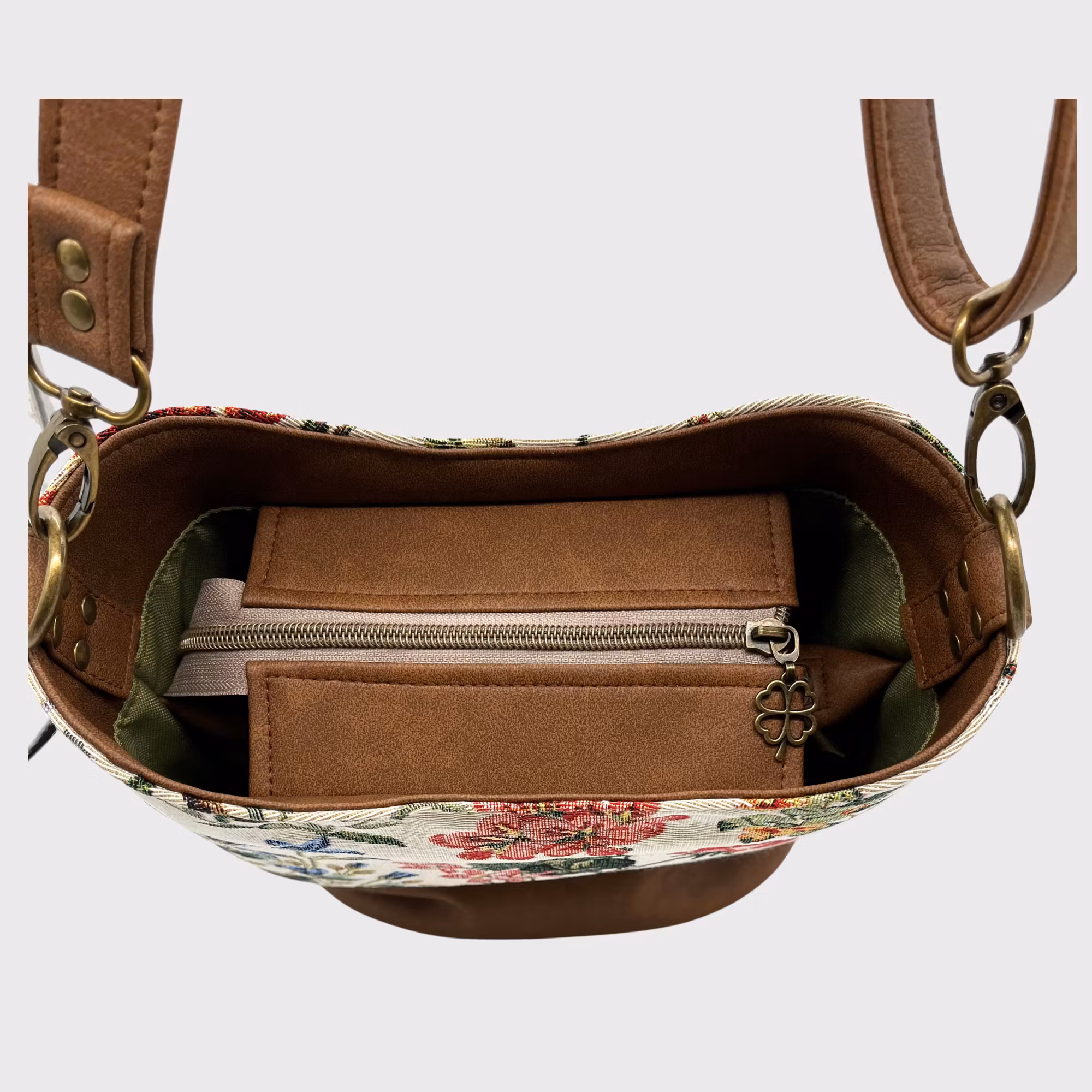 -En stikklomme og en lomme som deler vesken i 2 innerlommer.