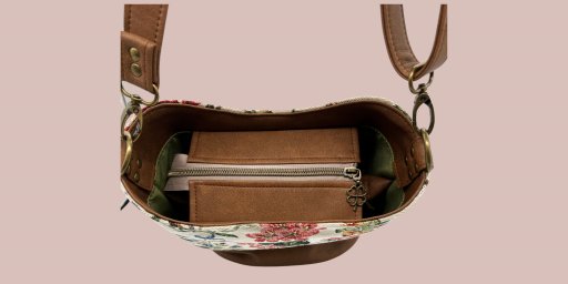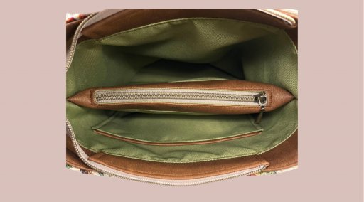 En stikklomme og en lomme som deler vesken i 2 innerlommer