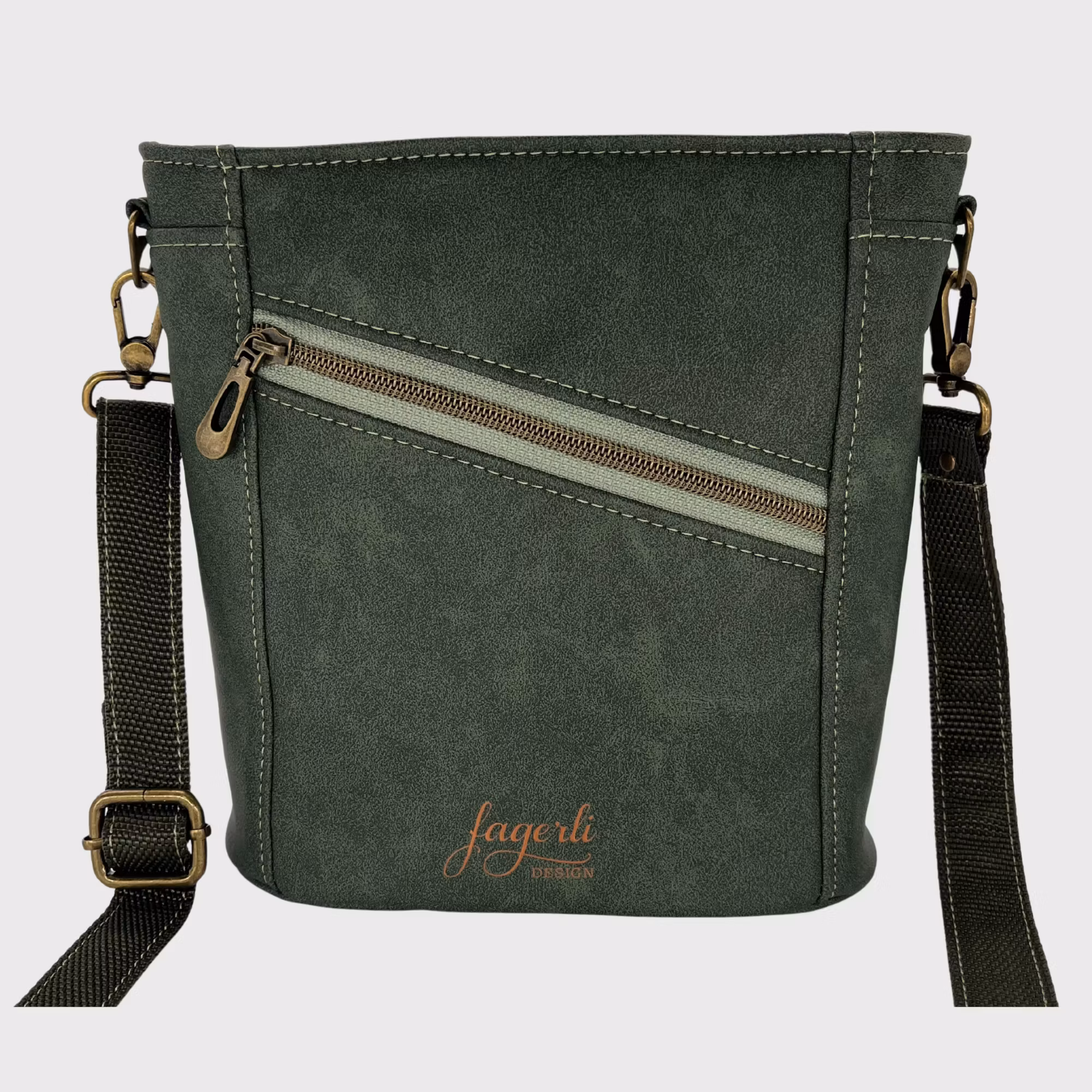 - Utvendig: 1 Glidelåslomme på fremsiden, lomme med magnetknapp på baksiden.