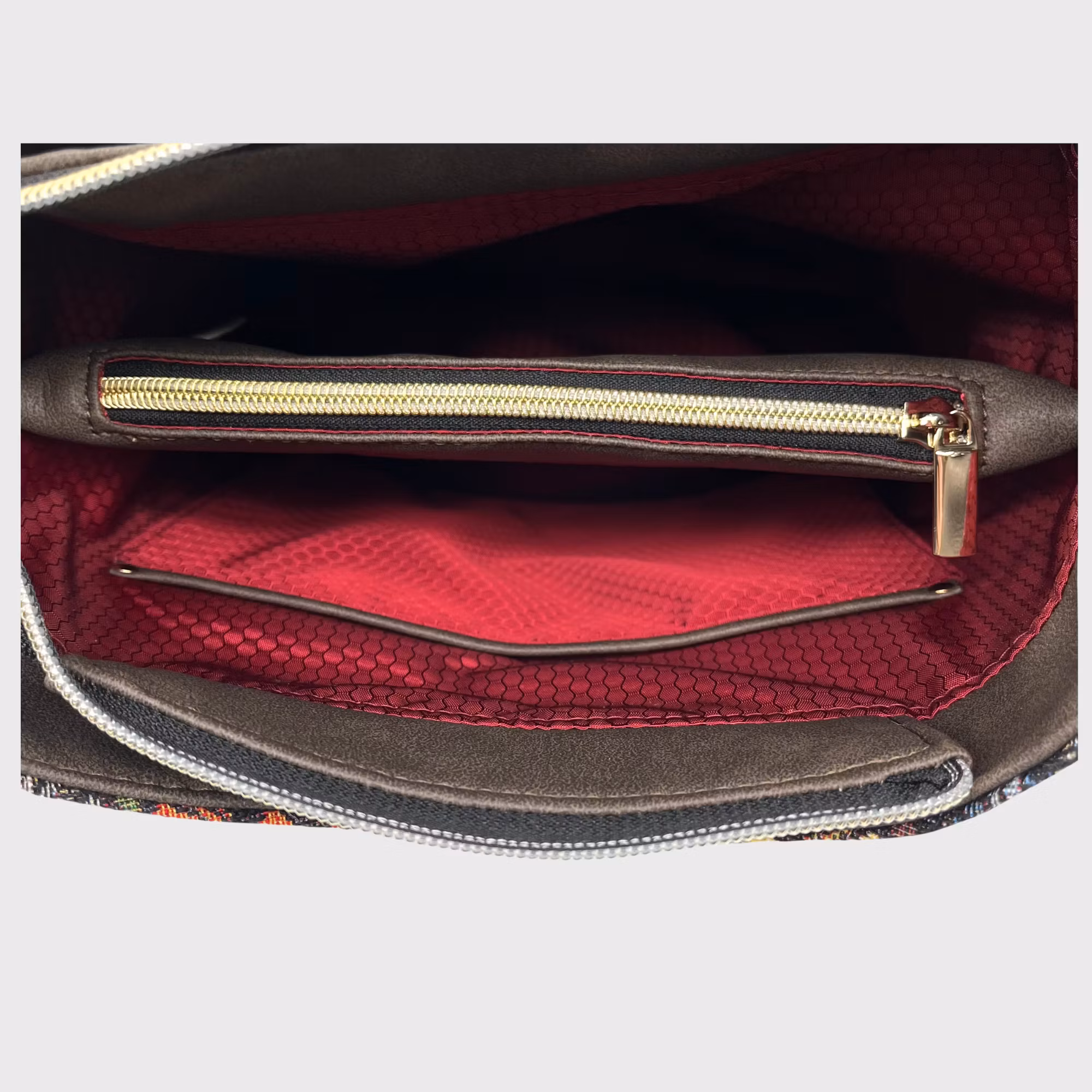 -En stikklomme og en lomme som deler vesken i 2 innerlommer.