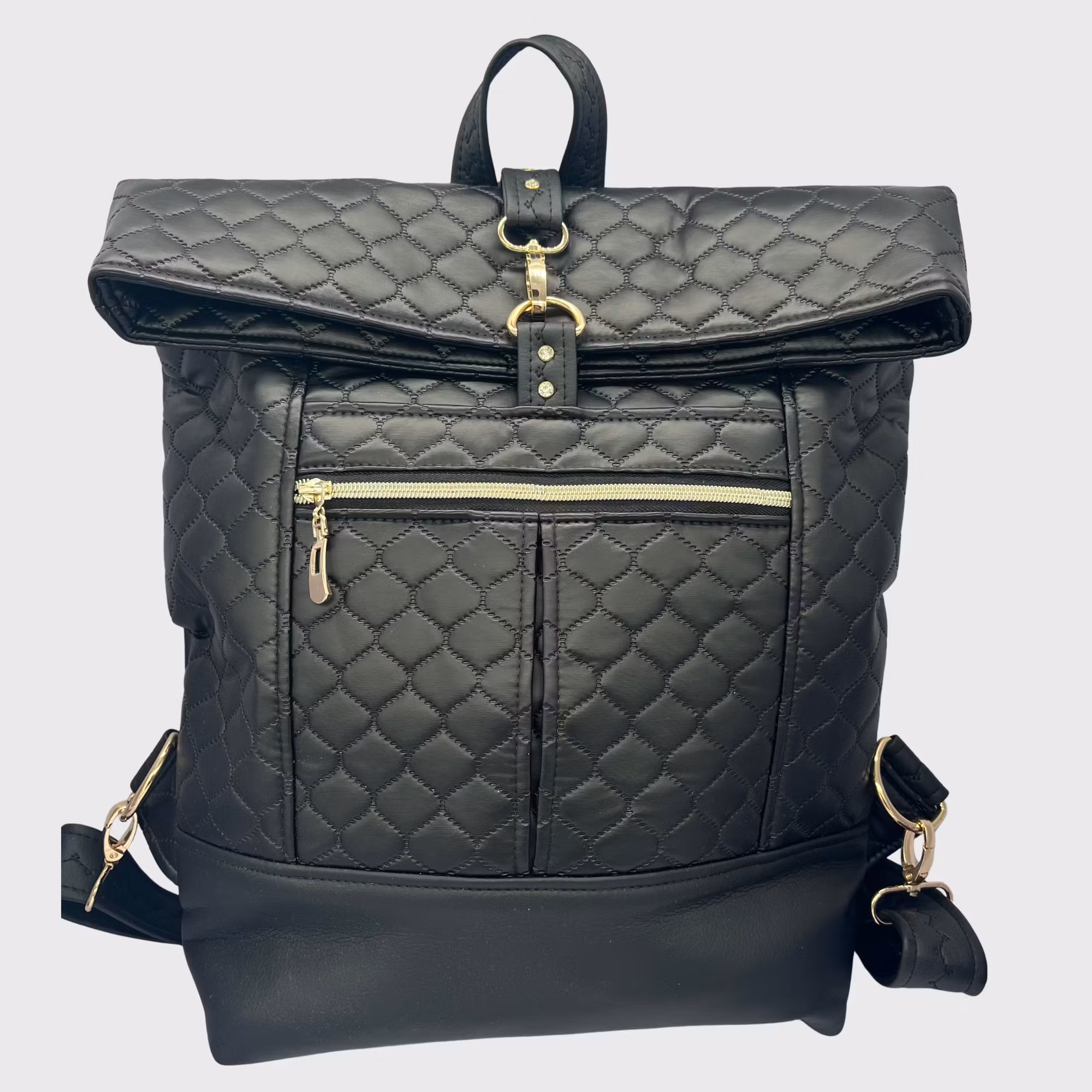 Ryggsekk i svart boble imitert skinn, gullfarget hardware.