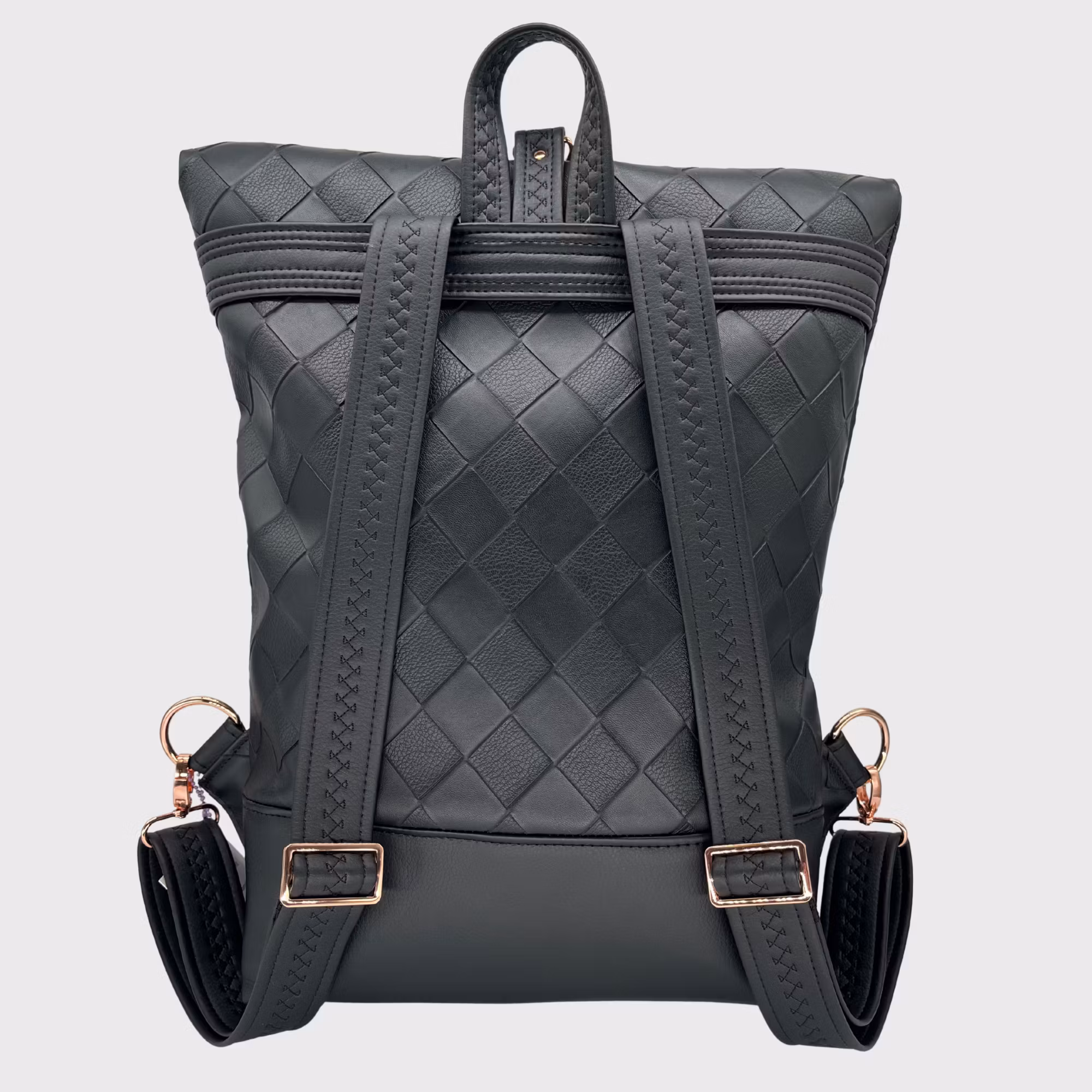 Ryggsekk i svart rutete imitert skinn, rosegull hardware.