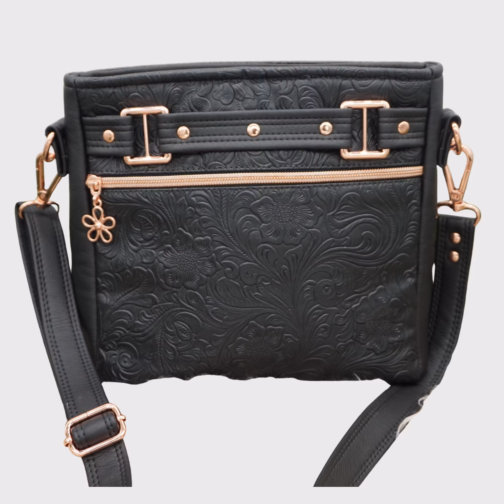 Stilig veske med mange detaljer.