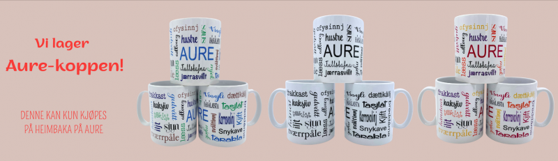 Vi lager Aure-koppen Denne dialektkoppen kan kjøpes i 5 ulike farger hos Heimbaka på Aure.